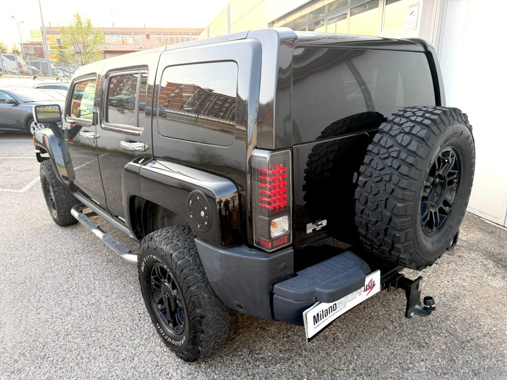 Hummer H3 3.7 Benz./GPL – 245 cv – 85.747 mls certificate e garantite (137.195 km) – no super bollo – cambio automatico – pacchetto cromature – pedane – gancio traino omologato – cerchi in lega da 16” – interni in pelle – impianto GPL NUOVO Zavoli da 60 Lt. montato sottoscocca con scadenza aprile 2036 – sensori park – immatricolata autovettura 5 posti – specchietti elettrici – interni in pelle totale nera – tetto apribile – euro 4