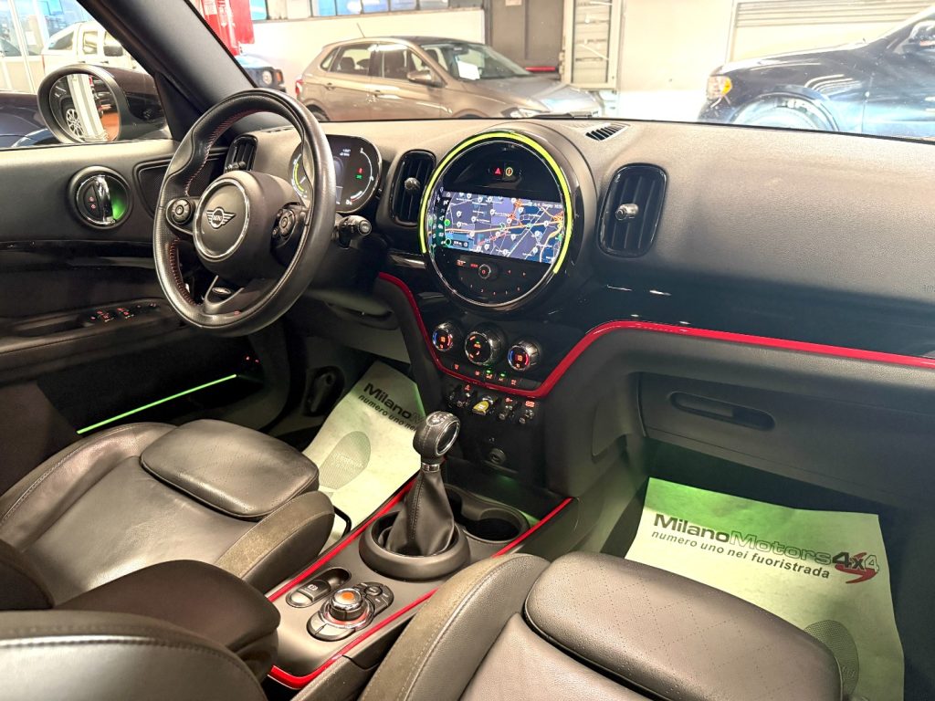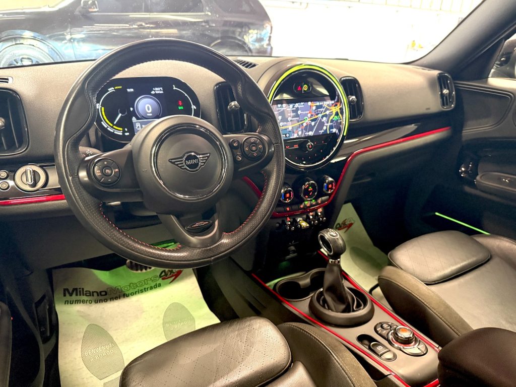 Mini Countryman 1.5 Cooper SE ALL4 – allestimento sportivo ed esclusivo John Cooper Works ''JCW'' – cambio automatico – 29.609 Km certificati, garantiti e tagliandati ufficiali Mini Italia – euro 6D Temp Evap – navigatore cartografico – sensori park – cerchi in lega da 18'' ''JCW'' – USB – specchietti elettrici – climatizzatore automatico – CarPlay – sensori park – baule elettrico – digital cockpit – sedili sportivi ''JCW'' in pelle totale con inserti sportivi in alcantara e cuciture rosse – volante multifunzione sportivo ''JCW'' – paraurti e mini gonne ''JCW''